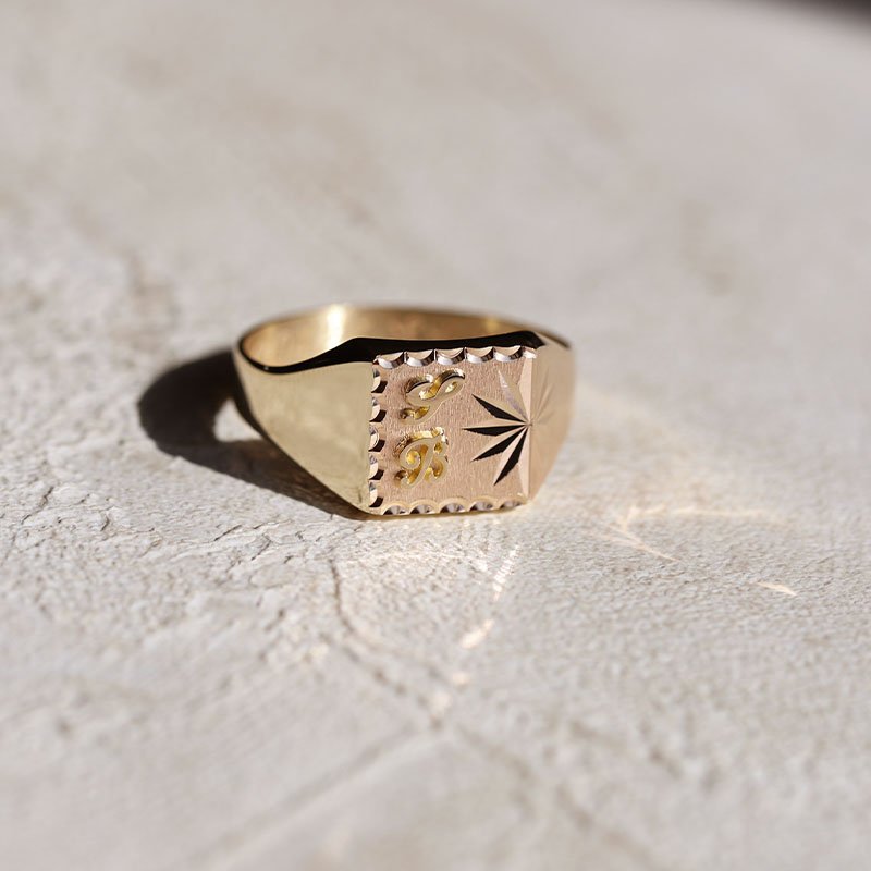 Le plateau est la partie supérieure de la chevalière, là où se trouvent les finitions et les gravures. Selon le modèle, vous pouvez y ajouter une ou deux initiales, pour rendre votre bijou unique.