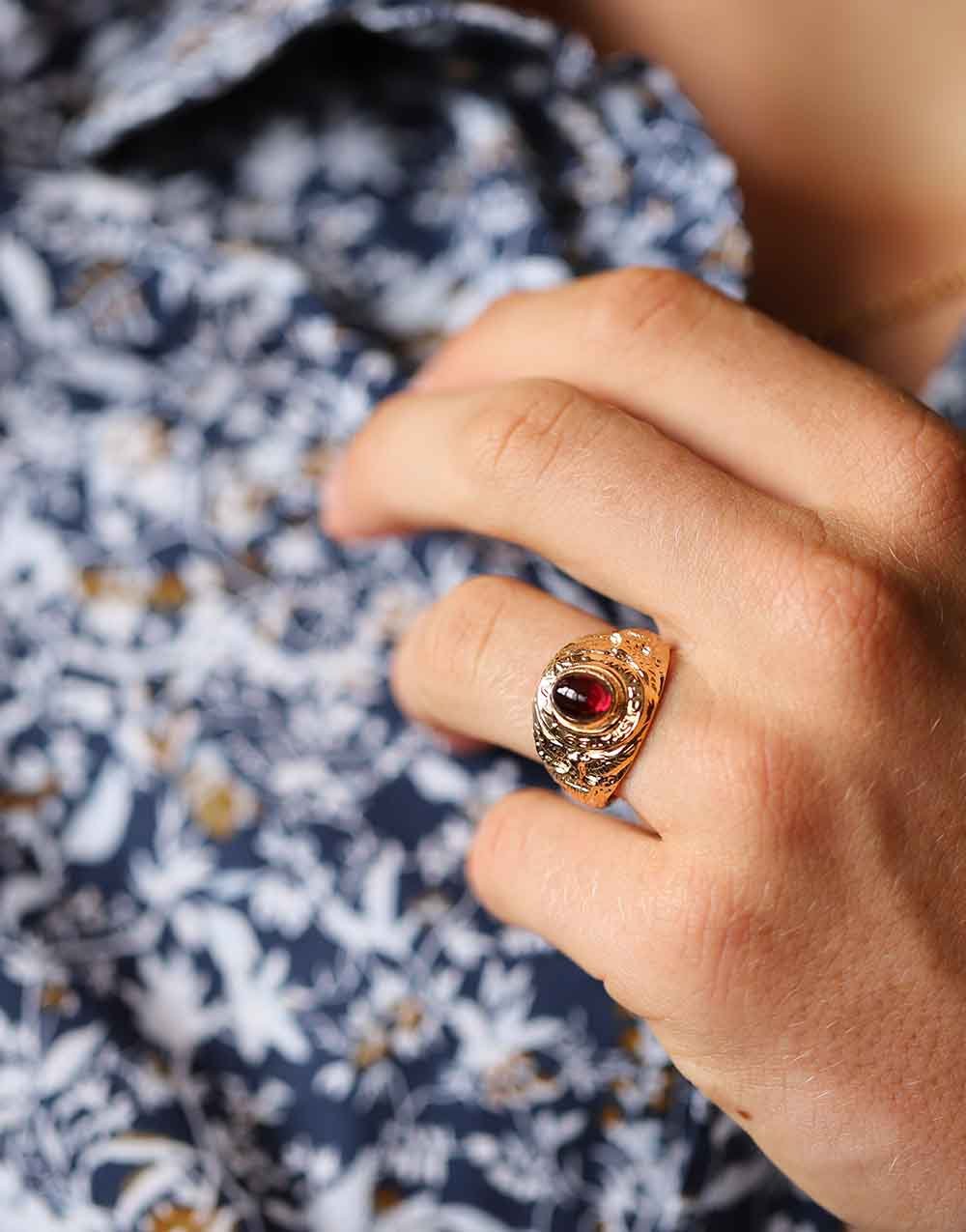 Façonnée à la main par nos artisans bijoutiers français, cette bague est réalisée en or jaune ou or blanc, disponible en 9 ou 18 carats. Chaque détail, du dessin du plateau à la gravure des motifs, témoigne d’un savoir-faire traditionnel et d’un travail d’orfèvre minutieux, transmis de génération en génération dans nos ateliers français.