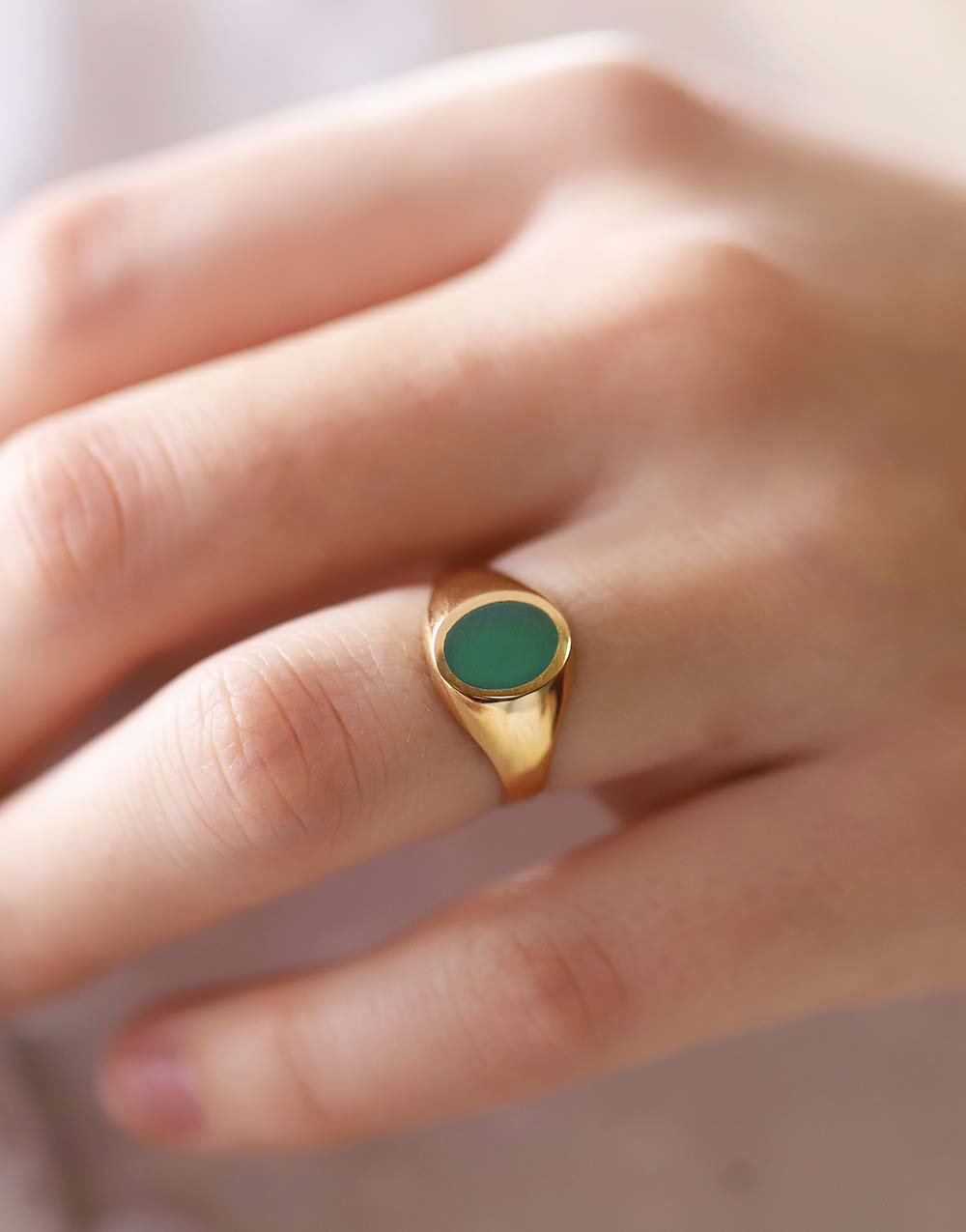 Découvrez la chevalière Agathe Verte en Or Ovale Olivia, un bijou raffiné pensé pour sublimer la féminité. Ce modèle élégant, avec son plateau ovale de 10x8mm, met en valeur une pierre fine d’agate verte, reconnue pour ses vertus apaisantes et protectrices. Chaque détail de cette chevalière pour femme reflète le savoir-faire exceptionnel de nos artisans français : le travail est entièrement fait main, avec une attention particulière portée à la qualité et à la finition.