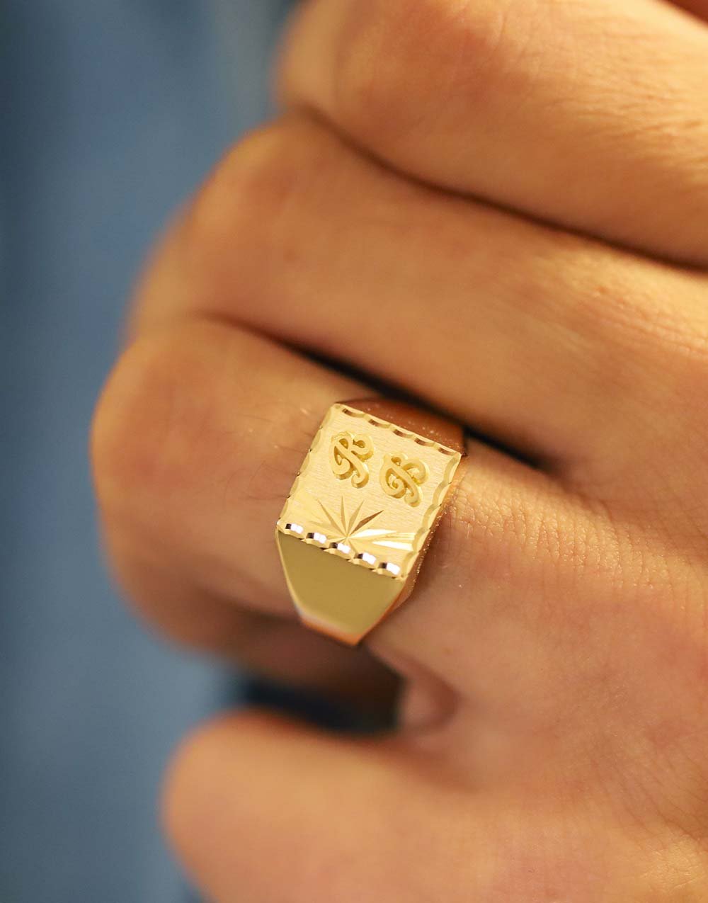 Chevalière Carrée en Or Charlie Rayons Étoilés