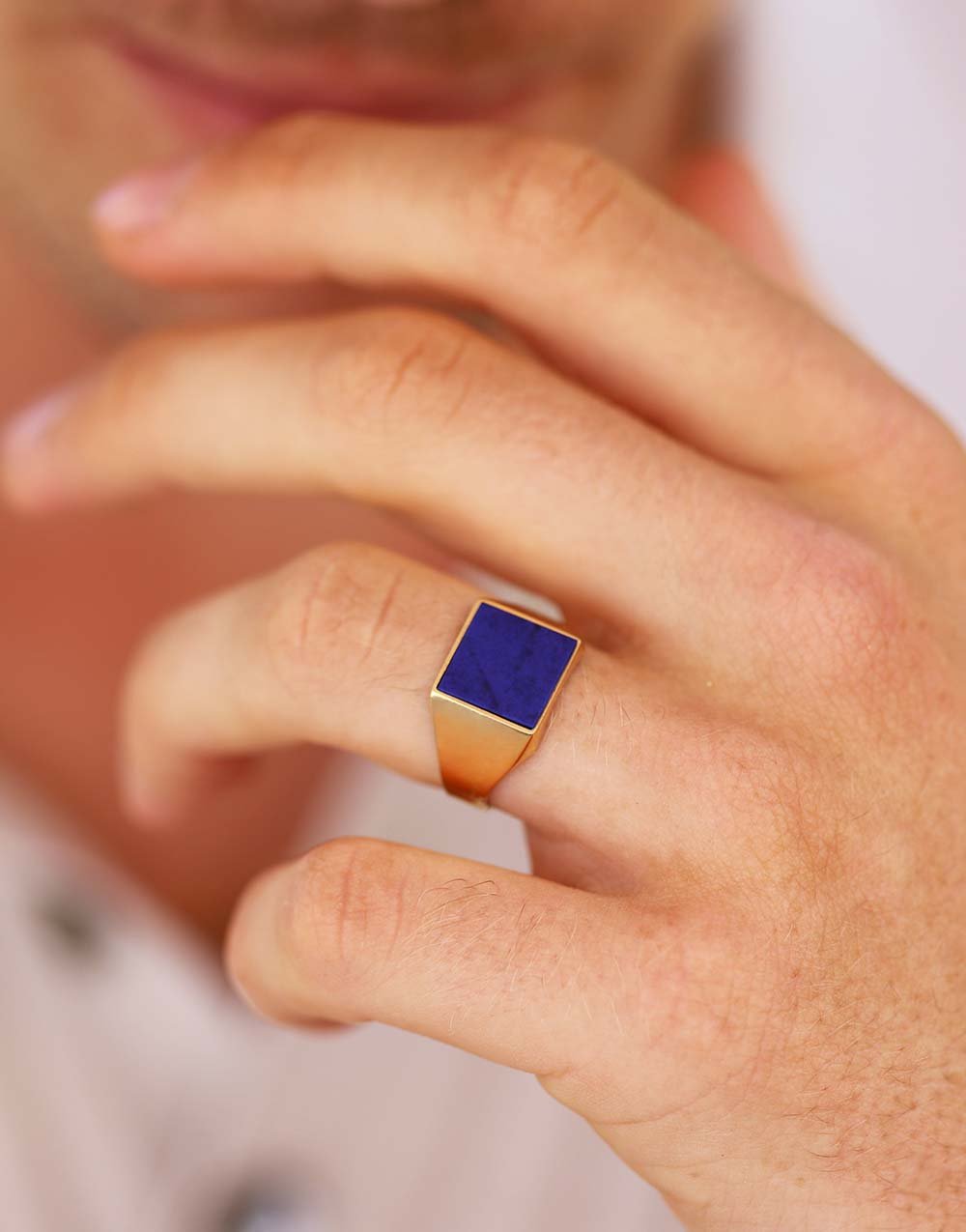 Chevalière Lapis Lazuli en Or Carrée Clarence