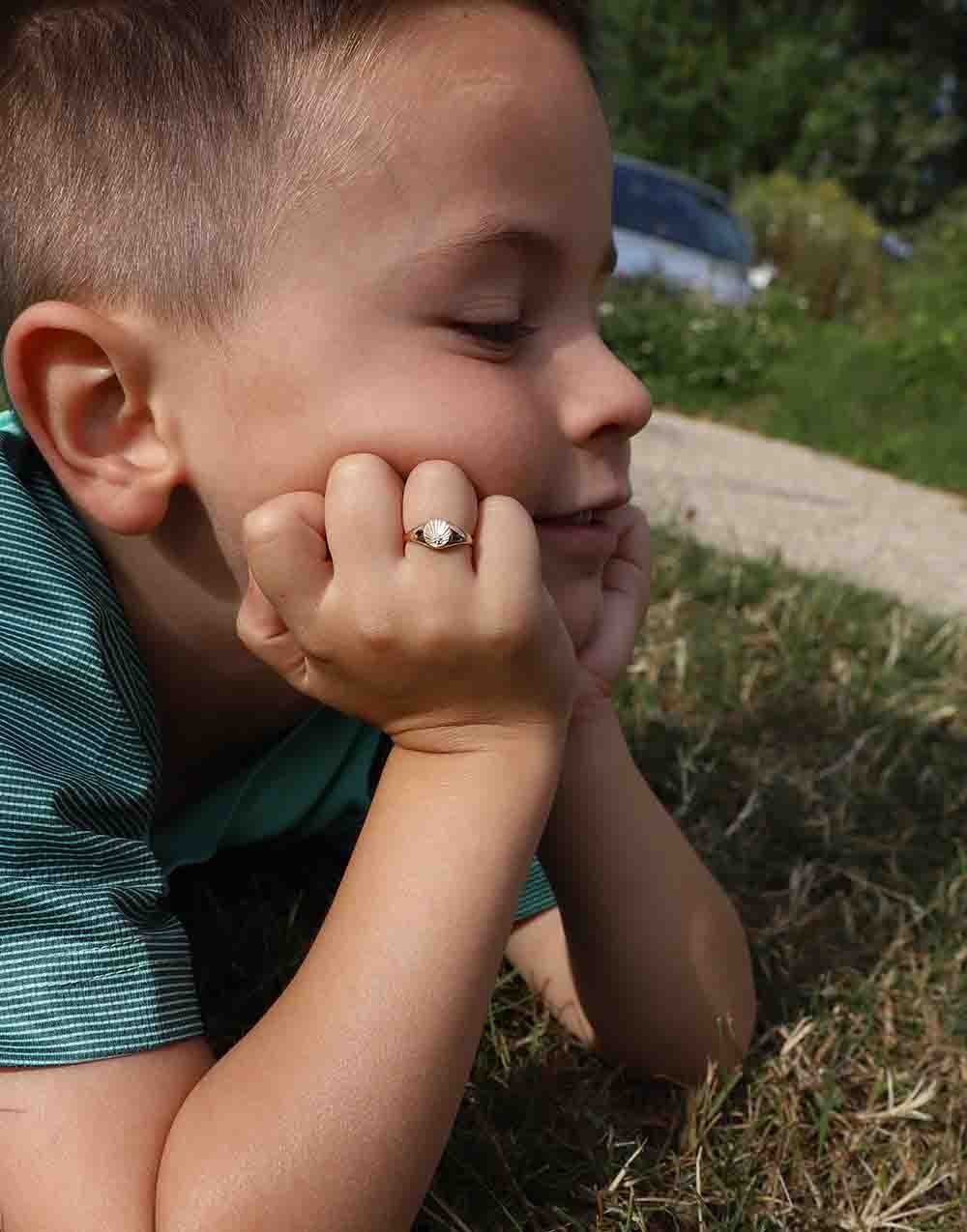 Cette chevalière pour enfant est spécialement conçue pour enfants et bébés, idéale pour célébrer des événements marquants comme une naissance ou un baptême. Sa forme délicate et sa finition soignée en font un cadeau intemporel, à conserver et chérir au fil des années. Notez que ce modèle ne peut pas être personnalisé : ni gravure intérieure, ni initiales. Il se distingue par son design pur et lumineux, pensé pour mettre en valeur le diamant et le motif solaire.