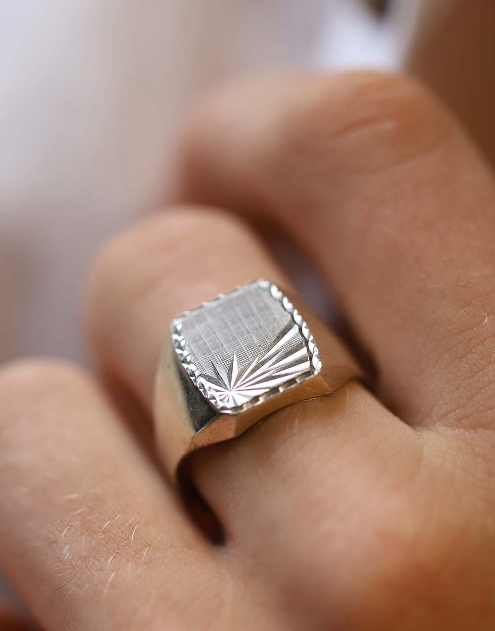Sous l’étoile, vos initiales peuvent être soudées sur le plateau, pour faire de chaque chevalière traditionnelle un bijou unique, reflet de votre identité. L’intérieur de l’anneau est également gravable, permettant d’inscrire un prénom, une date ou un message symbolique, pour un bijou encore plus personnel et chargé de sens.