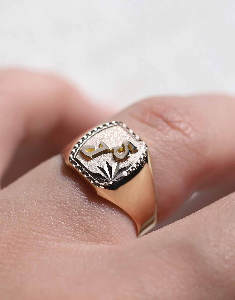 Cette chevalière peut être personnalisée avec des initiales soudées ou gravées sur le haut du plateau, selon vos préférences. Pour un bijou encore plus unique, il est possible de graver l’intérieur de l’anneau. La personnalisation est offerte, pour un cadeau ou un bijou à votre image. Disponible en chevalières homme or et chevalières femme or, la Chevalière Taylor Contour Étoile allie histoire, tradition et savoir-faire français. Chaque détail raconte une histoire, faisant de ce bijou un symbole d’élégance et d’identité, à porter au quotidien ou pour les grandes occasions.
