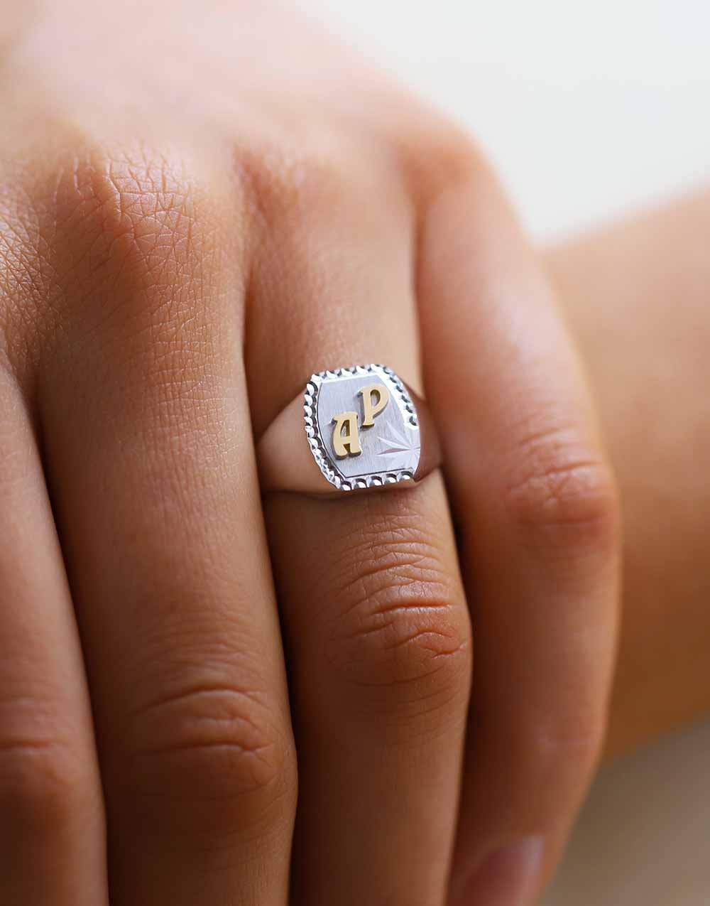 Le plateau est la partie supérieure de la chevalière, là où se trouvent les finitions et les gravures. Selon le modèle, vous pouvez y ajouter une ou deux initiales, pour rendre votre bijou unique.